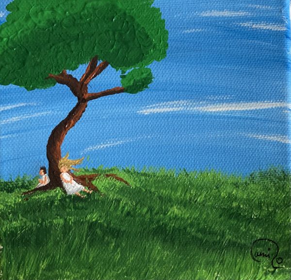 Peinture acrylique représentant des enfants après de longs jeux